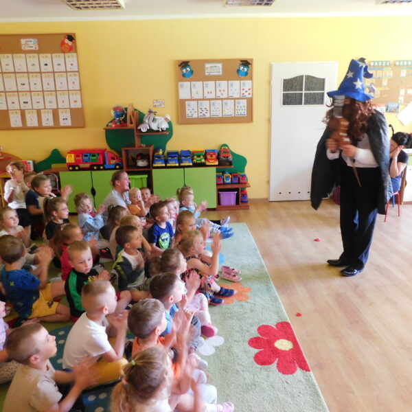 Magiczny nastrój kolorowych miejsc pobudza dziecięcą wyobraźnię i wpływa na rozwój dziecka. Dlatego w naszym Przedszkolu sale są bajecznie kolorowe, zewsząd słychać muzykę pozytywnie wpływającą na nastrój dziecka a poprzez prace plastyczne, dzieci tworzą swój bajkowy świat.