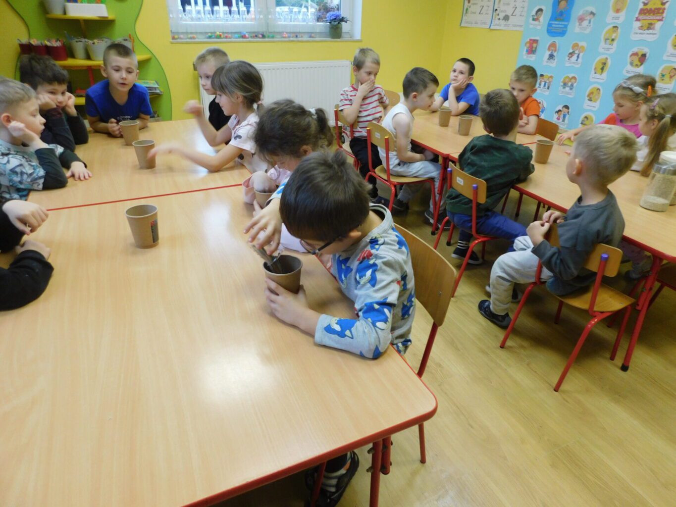 Magiczny nastrój kolorowych miejsc pobudza dziecięcą wyobraźnię i wpływa na rozwój dziecka. Dlatego w naszym Przedszkolu sale są bajecznie kolorowe, zewsząd słychać muzykę pozytywnie wpływającą na nastrój dziecka a poprzez prace plastyczne, dzieci tworzą swój bajkowy świat.