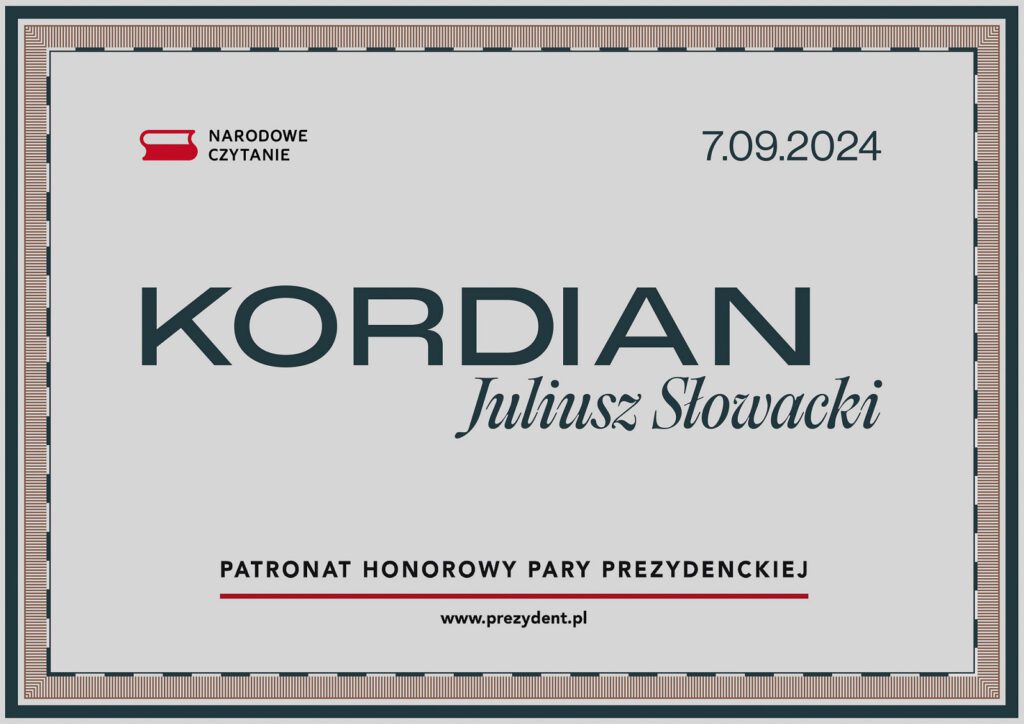 Akcja, organizowana od 2012 roku pod patronatem pary prezydenckiej, promuje czytelnictwo i klasykę polskiej literatury. Lekturą 13. edycji był utwór „Kordian” Juliusza Słowackiego – wieszcza narodowego epoki romantyzmu.